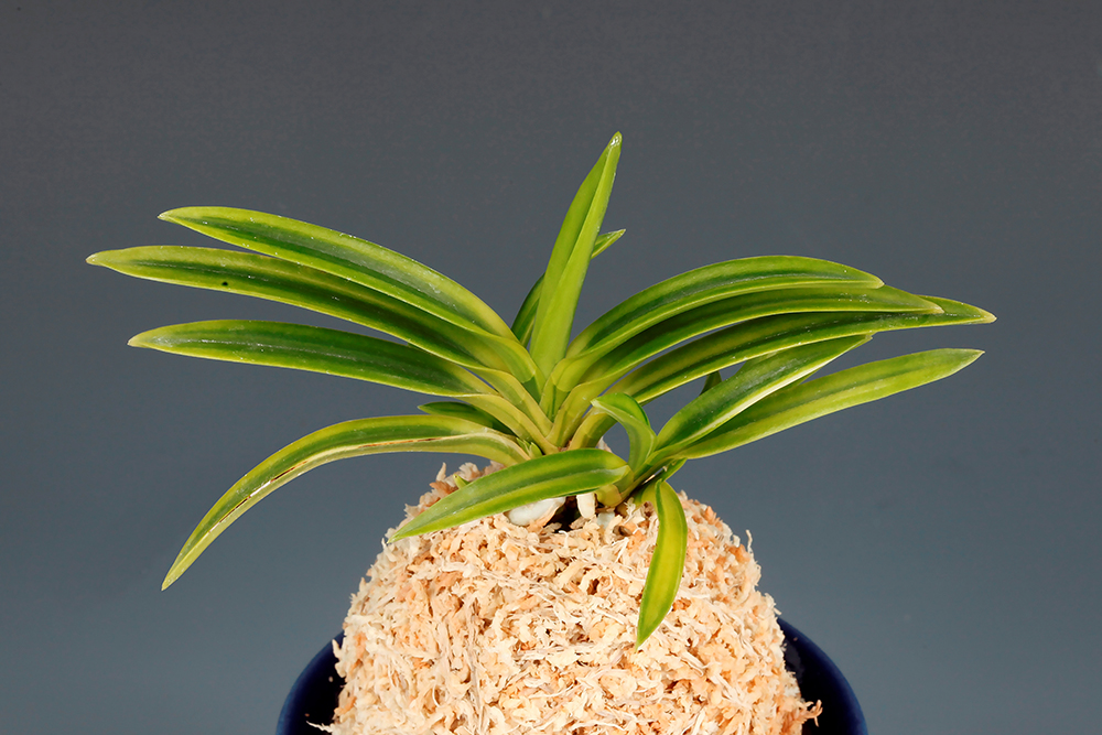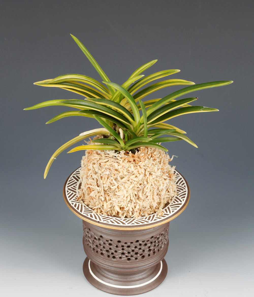 아마미계 풍란 청축, 청근의 노란빛 연두색(萌黃) 복륜이다. 2017년경 소장자가 전문점에서 아마미계 풍란 청축, 청근의 줄무늬(縞) 개체를 입수, 2년 차 재배 중에, 모주(親株)는 원인 모르게 고사(枯死)하고 그 싹(芽) 변이로 나온 맹황복륜(올리브그린) 품종이다. 새잎은 감중통(紺中通) 「모단 예(牡丹 芸)」로 올라, 서서히 줄무늬(三光縞)처럼 흘리면서, 노란 연두색 삼광중반(三光中斑)의 복륜과 縞의 예(多芸)로, 올리브그린이 어우러진 앙상블(Ensemble )은 볼만한 작품이다. 이 품종은 특이하게도 니축의 '만물상(萬物相)'을 닮아, 감복륜 중투에 縞의 신아도 태어나, 아직도 변화를 계속 중인 듯 귀추가 주목된다. 연복륜은 언뜻 보면 수수하지만 볼수록 은은한 매력을 발산하는 모습이 「자신의 속마음을 알아주는 참된 친구(知己之友)」라는 의미로 "지우관"으로, 소장자(민용기)의 명명이다. 잎은 전형적인 아마미 풍란의 중형으로, 소담스러운 모습이다. 청축에 청근으로, 붙음매는 월형이다.