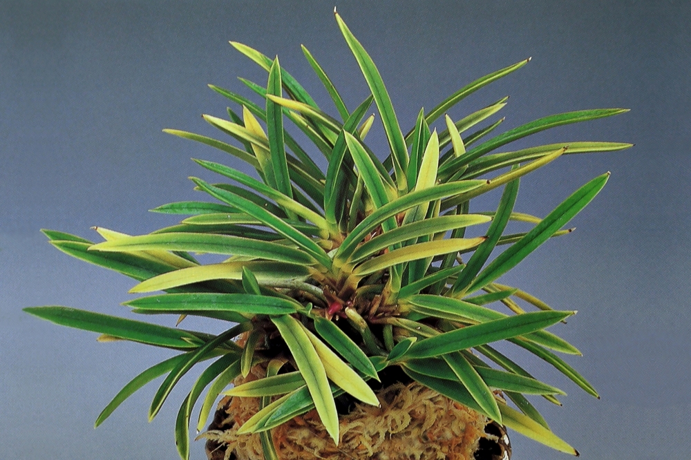 중형의 입엽으로, 잎 겹침(葉重)이 느슨하며, 감성(紺性)이 약한 편이지만, 모습은 샤프한 인상을 준다. 미에현(三重県) 산으로, '부사근지설(富士根之雪)'. '문명(文明)'이라고도 옛날에는 불렸다. '금공작'처럼, 승반(乗斑 : 잎 표면 전체에 확실하지 않은 희미한 虎斑이 나온 것. 잎 뒷면에서 보면 잎 가장자리에 테를 둘러놓듯이 마치 복륜처럼 보이지만, 잎 뒤까지는 빠지지 않는 무늬)이라고 하는 예(芸)이다. '금공작'의 황색 승반에 비해, 본종은 흰색의 승반을 나타낸다. 새로 나오는 싹(芽)은 푸르고, 고엽이 됨에 따라 표면에 흰(白) 승반이 나타난다. 무늬가 잘 나온 개체는, 붙음매 부위도 하얗게 빠져 「요반(腰斑)이 나왔다」라고 한다. 이 요반이 잘 나온 개체를, 옛날에는 '부사근지설'이라고 부르며 다른 품종으로 취급했다. 본종의 승반은 복륜 모양으로 잎 가장자리에 강하게 나오는 경향이 있다. 니축에 짙은 적근으로, 붙음매는 월형이다.