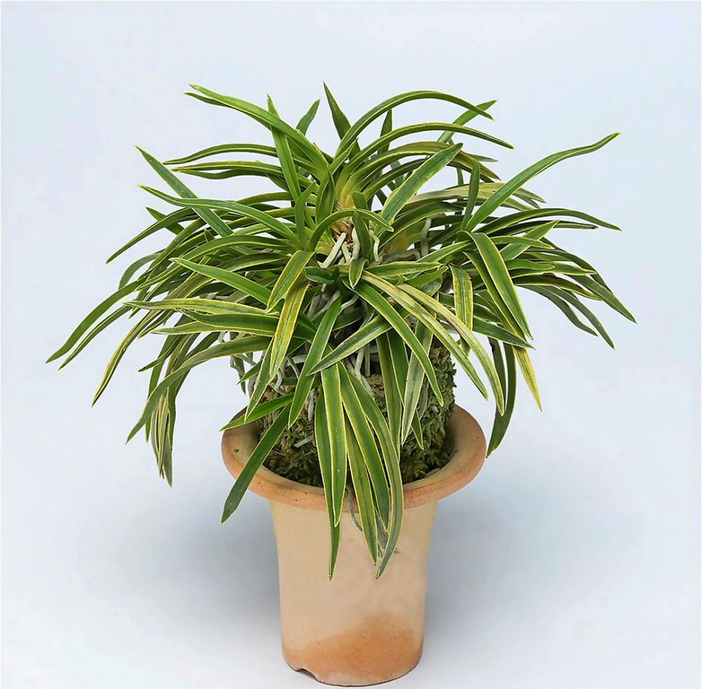 아래로 휘어짐이 좋은 희엽으로, 잎끝이 노수엽이다. 시마네현(島根県) 산으로, 1990년도 등록 품종이다. 잎은 가늘고 잎살도 얇다. 잎은 무늬가 없는 무지(無地)로 나오며, 천엽에서 세 번째 정도, 고엽(古葉)이 되면 사복륜(糸覆輪) 같은 무늬가 오른다. 그보다 더 아래는, 잎 표면 전체에 아주 엷은 노란색(淺黃色)의 승반(乗斑:잎 표면에 희미한 虎斑이 나온 것. 잎 뒷면에서 보면 잎 가장자리에 테를 둘러놓듯이 마치 복륜처럼 보이지만, 잎 뒤까지는 빠지지 않는 무늬)이 나타난다. 많이 늘어났기 때문인지, 인기가 낮은 세엽계의 지금의 추세 때문인지, 새로운 품종임에도 비교적 인기가 낮다. 좁은 잎에 노수엽이 섞인 모습은 독특한 멋이 있어, 조금 더 재평가하고 싶은 품종이다. 본종에서 노란 줄무늬(黃縞)의 '출운금(出雲錦)'이라는 진품(珍品)이 나온다. 니축에 니근으로, 붙음매는 월형이다.