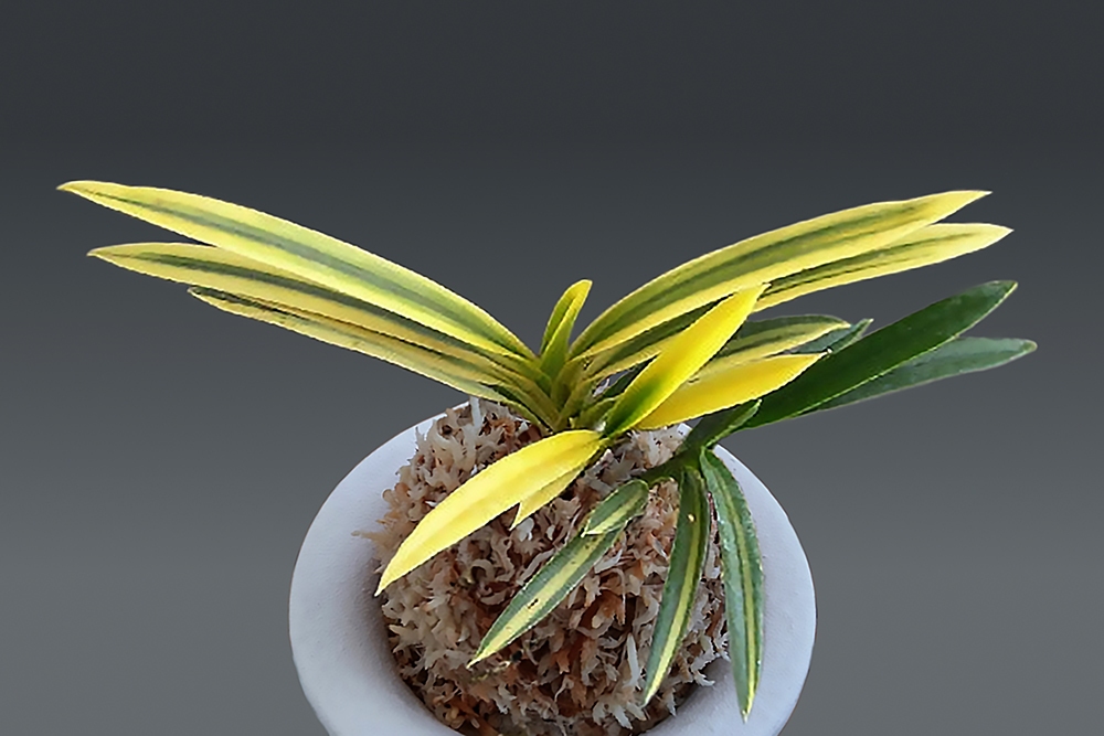 '옥천금(玉川錦)'이 복륜으로 된 것이다. 입엽이면서 검엽(劍藝)를 나타내지 않는 복륜은 적기 때문에 귀중한 변화 품종이지만, 이 품종은 몇 년 전부터 부모의 호(縞)로부터 복륜으로 변화된 것으로, 새로 나오는 신아는 모두 복륜이 되고 있다. 약간의 주의가 필요하다면, 복륜의 무늬 비율이 많은 탓인지, 품종에 의한 것인지, 어느 쪽이 원인인지 모르지만, 광합성에 의한 성장의 능력 저하로 개체 유지가 어렵고, 현상 유지로서 광합성 에너지와 소비하는 에너지의 수지 밸런스가 맞지 않을 것으로 생각된다. 따라서 이 품종은, 세월이 지날수록 점점 화려해지므로, 개체 유지를 위해서는 각별한 주의가 필요하다. 다소 좁은 잎은 두꺼운 입엽으로, 끝이 뾰족하다. 약간 후천성(後天性)이지만, 선명한 극황 대복륜이다. 니축에 니근으로, 붙음매는 월형이다.