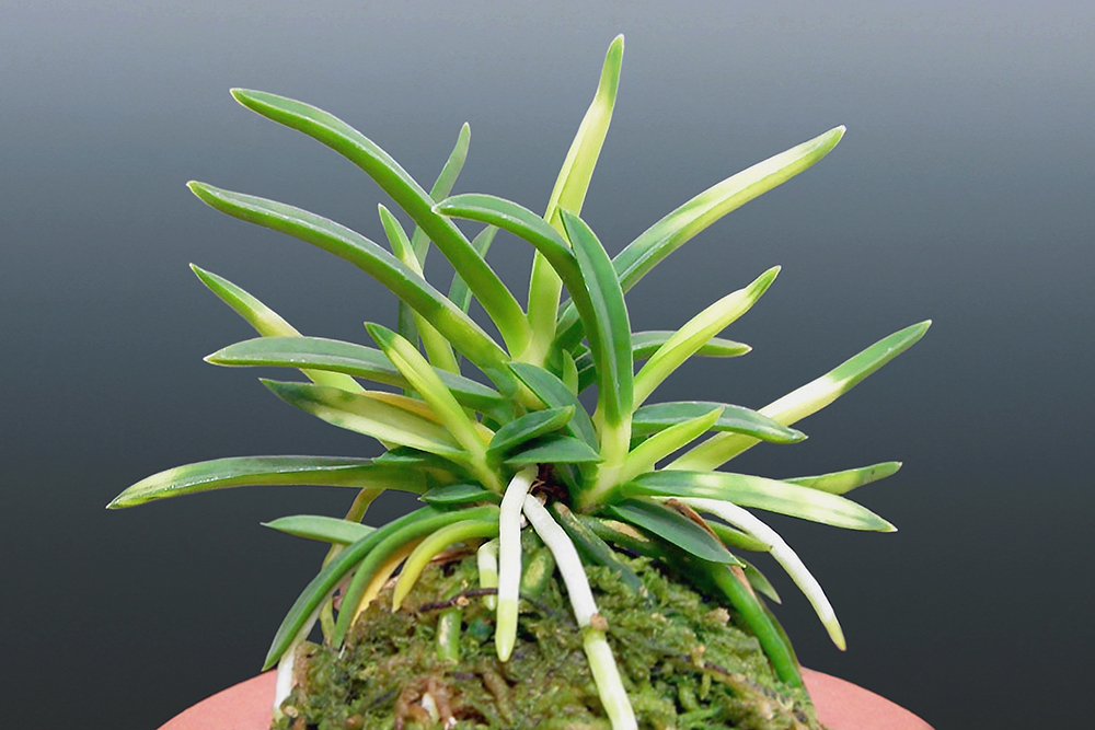 잎은 가늘고 약간 희엽성이다. 백호반(白虎斑)을 나타내지만, 발색하는 방법이 좋지 않다. 무늬가 잘 나오지 않은, 청축의 '설산(雪山)'을 보는 느낌이다. 1941년에 발견된 것인데, 자세한 산지의 기록은 없다. 1943년, 오사카(大阪)에서 동호인들이 모인 자리에서, "호박(琥珀)"이라고 명명되었다. 감성(紺性)이 강하며, 새잎이 나올 때 백호반(白虎斑)을 나타낸다. 이후 어두워지며 아래 잎은 무늬가 거의 없는 경우가 많으나, 그늘에서 키우면 의외로 무늬가 잘 남는다. 좋은 무늬(上柄)는 적어, 인기가 다소 덜하다. 일반적으로 호반(虎斑)을 내기 위해서는, 황호(黃虎)는 햇빛을 강하게, 백호(白虎)는 그늘에서 약한 햇빛으로 키우는 것이 기본이다. 청축에 청근으로, 붙음매는 월형이다.