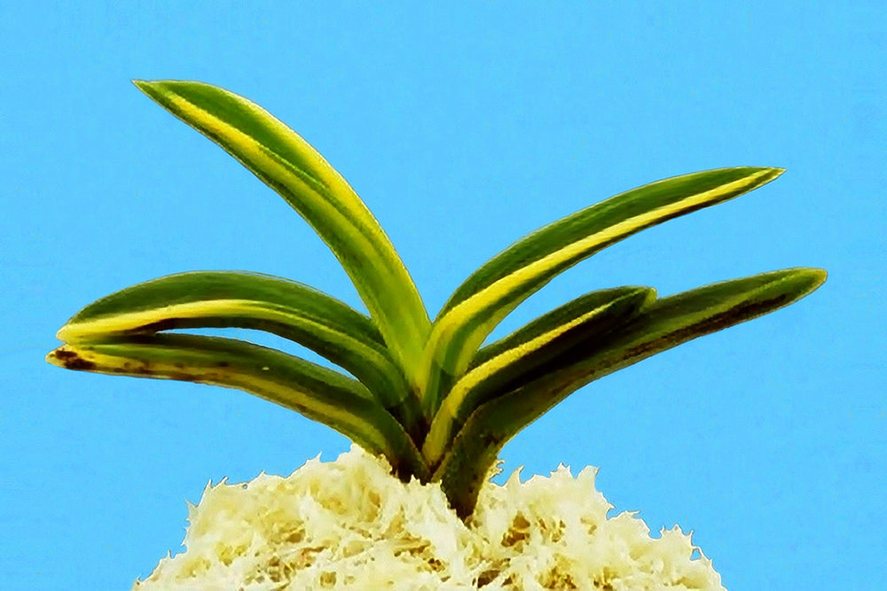 규슈 산(九州産)으로, 끈적끈적한(樹脂, 송진) 묵(墨)을 흘리는 황호(黃縞) 품종이다. 감성(紺性)이 강한 잎은 두껍고, 끝이 둥근 중형 종이다. 예(芸)는 선천성의 백황호(白黃縞)로, 잎 뒤로는 검은 먹줄을 친 듯 묵(墨)도 흐른다. 묵류(墨流)의 예와 호(縞)의 이예(二藝)로 주목되는 일품이다. 그러나 지금은 절종(絶種)된 듯, 간혹 묵 개체만 보일 뿐 무늬가 들어간 개체는 본 적이 없다. 다만 이 묵만의 개체에서는 쉽사리 무늬가 나오기는 어렵지만, 마니아들에게는 평생의 꿈으로 계속 즐기고 있는 보물 같은 존재다. 그래서인지 같은 묵 개체로, 현재의 '음풍(吟風)'에서 그 자리를 대신하는 것 같은 분위기다. 니축에 니근으로, 붙음매는 월형이다.