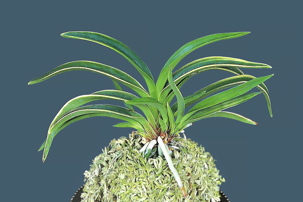 아마미계 풍란 무지물(無地物) 실생에서 출현한 변이(変異) 개체이다. 한국의 농원에서는 보통 풍란을 개화주(開花株)로 키워 시장에 출하하고 있는데, 그 풍란의 묘목(苗木) 중에서 선별된 것이다. 현재는 아마미 특유의 큰 사이즈로, 조금 특이한 타입의 복륜으로 고정되었다. 시즈오카(静岡)의 笠原茂 씨가 일본에서 키우면서, 예(芸)가 고정됨을 확인하고 "엄미천산(奄美天山)"이라고 명명, 증식에 노력하고 있는 향후 기대 품종이다. 아래 잎(下葉)은 중투(中透) 무늬를 이루지만 본엽(本葉)이 되면 복륜으로 바뀐다. 출아(出芽)는 무지이지만, 세 번째 정도부터 복륜이 뚜렷해진다. 이 복륜은 기존에 없던 호반 복륜(虎覆輪)과 같은 경계가 분명치 않은 신비한 예(芸)로 매력적이다. 잎은 폭도 넓은 아마미 특유의 희엽이다. 니축으로, 붙음매는 월형이다.