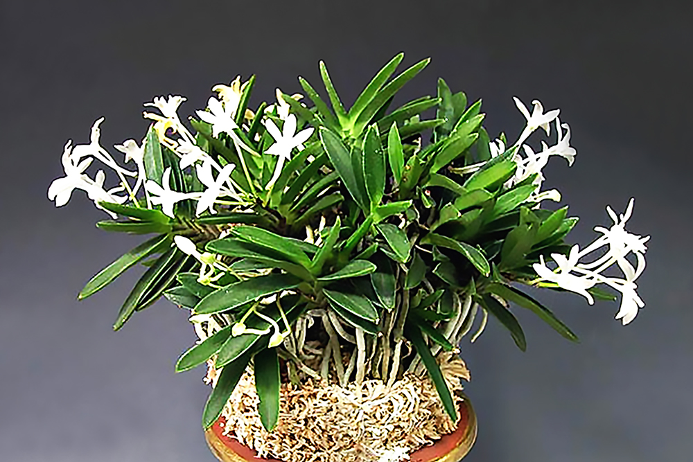 소형의 두엽으로, 같은 계열 중에서는 가장 입엽이기 때문에 구별하기 쉽다. 튼튼하고 신아(子) 붙임도 좋아서 대주(株立)로 만들기에 적합하다. 산지 미상이지만, 1930년대 문헌에 「오랜 세월 찾아볼 수 없었으나, 片山 씨가 紀州(현재 和歌山県) 방면에서 발견하였으며, 현재 이 근방에 분포 산재한다」라는 기록이 있다. 꽃은 꽃잎이 뒤로 젖혀지지 않는 하늘피기(天咲)로, 거(距)가 짧아 사랑스럽다. 이 꽃도 일반 풍란꽃에 비하면 훌륭한 꽃 변이라고 할 수 있다. 꽃과 잎 모두 즐길 수 있는 입문 품종으로 누구에게나 추천할 수 있다. 감성(紺性)이 좋은 광택 잎은 직립하고, 잎 중심이 넓고 잎끝은 조금 뾰족하다. 옅은 니축에 뿌리도 옅은 니근으로, 붙음매는 파형이다.