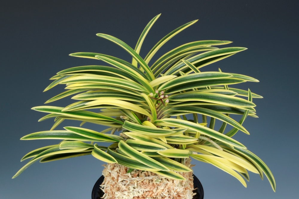 백호(白縞) 품종인, '부사금(富士錦)'에서 변화한 것으로, 품격 있는 잎 모습은 모종과 같다. 최초에 어디서 변화했다는 기록은 없고, 1939년의 일본 부귀란연합회의 명감에 신명명품으로 '부사복륜(富士覆輪)'이라는 이름이 처음 등장했다. 단정한 잎 모습으로, 출아는 맹황색(萌黄色)으로 나와 서서히 희게(白) 맑아지면서, 아래 잎은 설백(雪白)이 되지 않고 유백색(乳白色)의 복륜으로, 고상한 이미지를 준다. 재배에 의한 것인지 아닌지는 모르지만, 유백색보다 조금 더 황색(黃色)이 강한 개체도 볼 수 있다. 최상 무늬의 '부사금'이 위로 가면서 복륜으로 변하는 것이 많다. 전체가 복륜만으로 이루어진 대주는 매우 적다. 바탕의 감성(地紺性)이 좋고 대비(콘트라스트)가 아름답다. 짙은 니축에 니근으로, 붙음매는 월형이다.