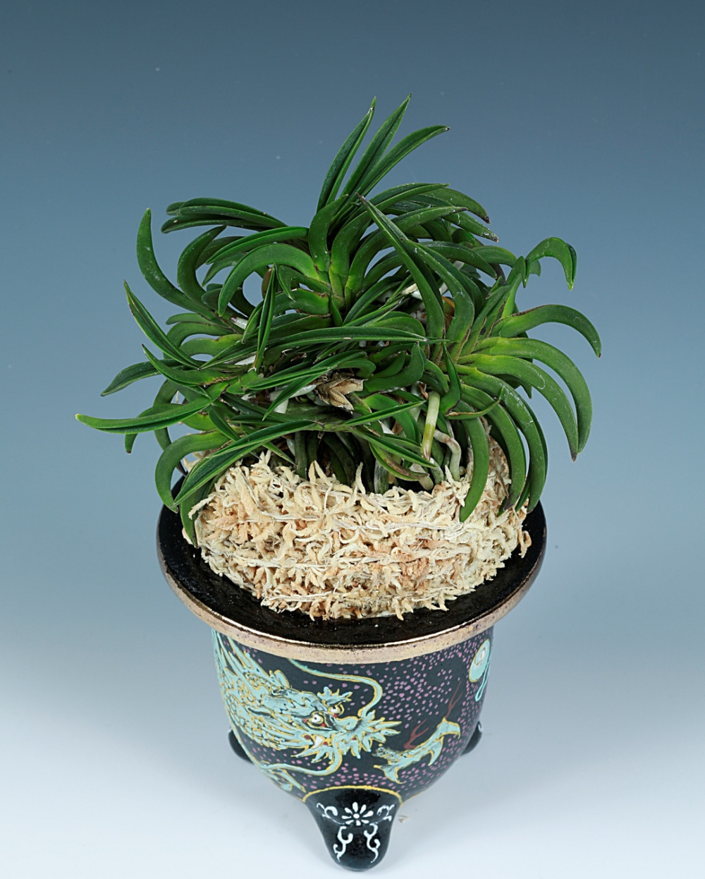 대부분의 사람들이 이 품종을 보면, 이해할 수 있는 이름이라고 생각한다. 잎 한 장을 자세히 보면, 강자(弁慶)의 상징이라고도 할 수 있는 낫, 장도(긴 자루 끝에 휘어진 칼)와 아주 비슷하다. 같은 예(芸)로 '사청해(絲靑海)'가 있지만, 이 품종은 축 부위가 넓고 볼륨감이 있다. 결정적인 차이는, '사청해'는 뿌리 끝이 대부분 청근으로 나오는 반면, 이것은 뚜렷한 니근이라는 점이다. 그 독특한 잎 모양으로 인해 무지물(無地物)의 대표적인 인기 품종이다. 성질은 그렇게 약하지 않으나, 번식력과 생장이 느리고, 키우기에 다소 특이한 점이 있어 주의가 필요하며, 대주(株立)는 어느 시대나 희소한 품종이다. 잎은 잎맥을 중심으로 둘로 접은 듯하며, 잎과 잎의 합침(襟合)이 단정한 만곡엽(湾曲葉)이다. 니축에 니근으로, 붙음매는 파형에 월형이다.