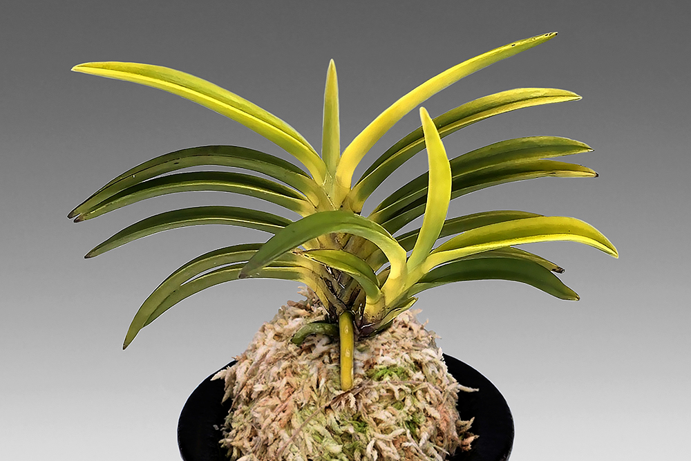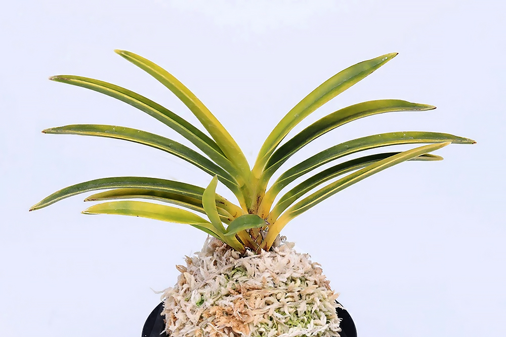 규슈(九州) 산 야생종의 선별품으로, 특이한 호반(虎斑)이 특징이다. 1975년대에, 오사카(大阪)에서 그 예(芸)가 완성되었다. 2000년도에 신 등록한 품종이다. 20년 이상 지난 품종치고는 화분수가 적어, 아직도 증식이 요망된다. 호 예(虎芸)로서는, 특이한 호반으로, 새잎은 노랗게(黄色) 나왔다가 나중에 어두워지지만, 그 후에 다시 호반이 떠오르며, 다시 나온 무늬는 고엽(古葉) 때까지 계속되는, 이단 예(二段芸) 또는, 전복 예(轉覆芸 : 처음 무늬는 성장과 함께 후암 된 후, 후천성 무늬가 나타나므로, 도중에 무늬가 바뀐 것) 호반이라는 진기한 변화다. 이 품종의 좋은 매력은, 아름다움 속에서도 예스러운 풍치(風致)를 느낄 수 있는 두툼한 축(軸)이다. 꽃봉오리는 황색(黃色)이고, 피면 크림색 꽃이다. 잎 폭은 보통이지만 잎 길이가 긴 대형에, 무광택 잎으로, 햇볕을 강하게 받으면 아름다운 요반(腰斑)도 나타난다. 니축에 니근으로, 붙음매는 월형이다.