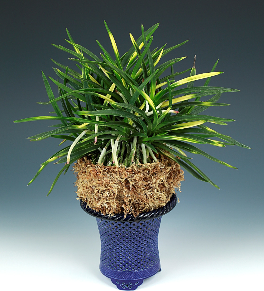 도쿠노시마(徳之島) 산, 아마미계로서는 처음 등록된 기념비적인 품종이다. 2003년도에 등록된 아직 새로운 품종이지만, 이미 호반(虎)의 대표 격인 품종으로, 노수엽을 곁들인 호쾌한 입엽에 백황(白黃)의 서호반(曙虎斑)이다. 천엽은 백황색(白黃色)의 서반으로 나와, 얼마 안 있어 어두워지지만, 화려한 부분은 백황색의 호반으로 남는다. 그 투명하게 비치는 듯한 호반의 아름다움도 뛰어나지만, 아마미계의 특징인 건강함도 큰 매력이며, 비료를 매우 좋아해, 쑥쑥 자라는 모습은, 보는 것만으로도 기분이 좋다. 호반은 무늬 내기가 어려운 품종이 많지만, 이 품종은 생장이 멈추지 않는 한 비교적 쉽게 무늬를 나타난다. 다만 너무 큰 대주(大株)로 키우지 않는 편이 무늬 발색이 더 좋은 것 같다. 상예품(上芸品)은 호반도 좋고, 뿌리 끝의 색도 루비에 가까워져 인기가 높다. 니축에 뿌리 끝은 옅은 니근이, 점차 루비근에 가깝게 되며, 붙음매는 월형이다.