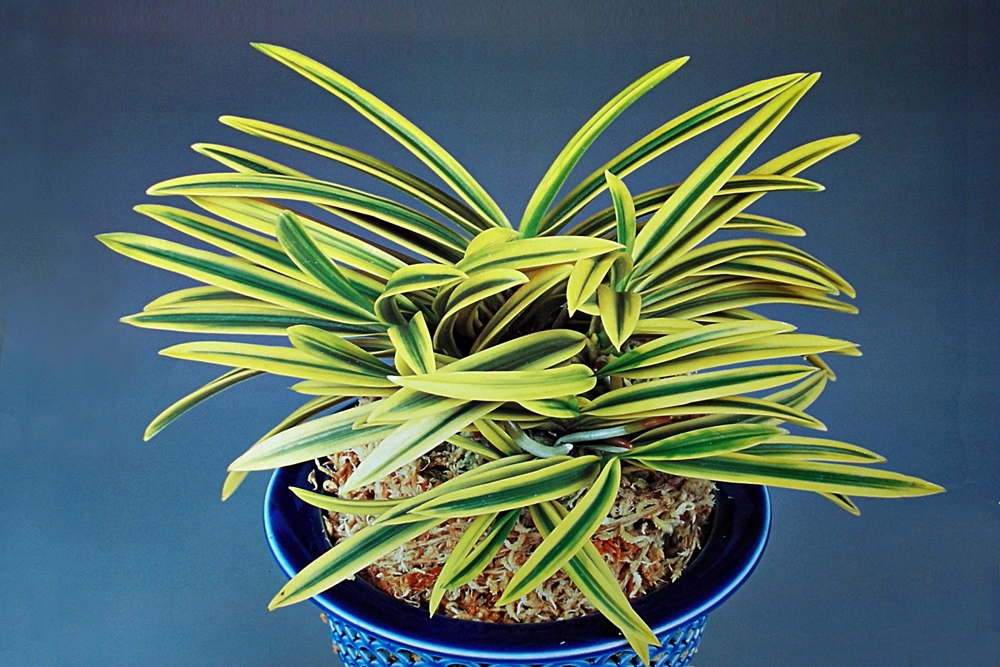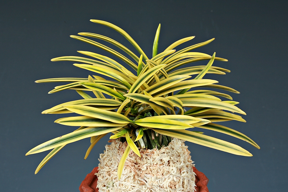 모종인 '금두(金兜)'는 직선적인 평엽성(平葉 : 평평한 잎)이지만, 복륜으로 완성되면 희엽계의 모습이 된다. 기록에는 미에현(三重県. 伊勢国 )에서 변화한 것으로 되어 있다. 그러나 본종으로부터의 싹(芽) 변화가 아닌, 모종의 줄무늬(縞)에서 변화한 복륜은 여러 곳에서 재배 중에 드물게 출현한다. 출아(出芽)는 연둣빛의 맹황색(萌黄色)으로 나오며, 잎끝 부분부터 황색(黃色)으로 밝아지면서 짙은 극황색(極黄色)이 된다. 또한, 복륜은 대복륜이므로, 신아(子芽)는 유령(幽霊地)으로 올라가며, 감중통(紺中通)을 빨리 보이면서 대복륜으로 완성된다. 縞에서 변화된 복륜 중에서는 의외로 고정성이 높고, 여러 촉으로 이루어진 대주(株立)도 볼 수 있다. 윤기가 도는 두툼한 잎은, 느긋하게 곡선을 그리는 희엽이다. 니축에 니근으로, 붙음매는 월형이다.