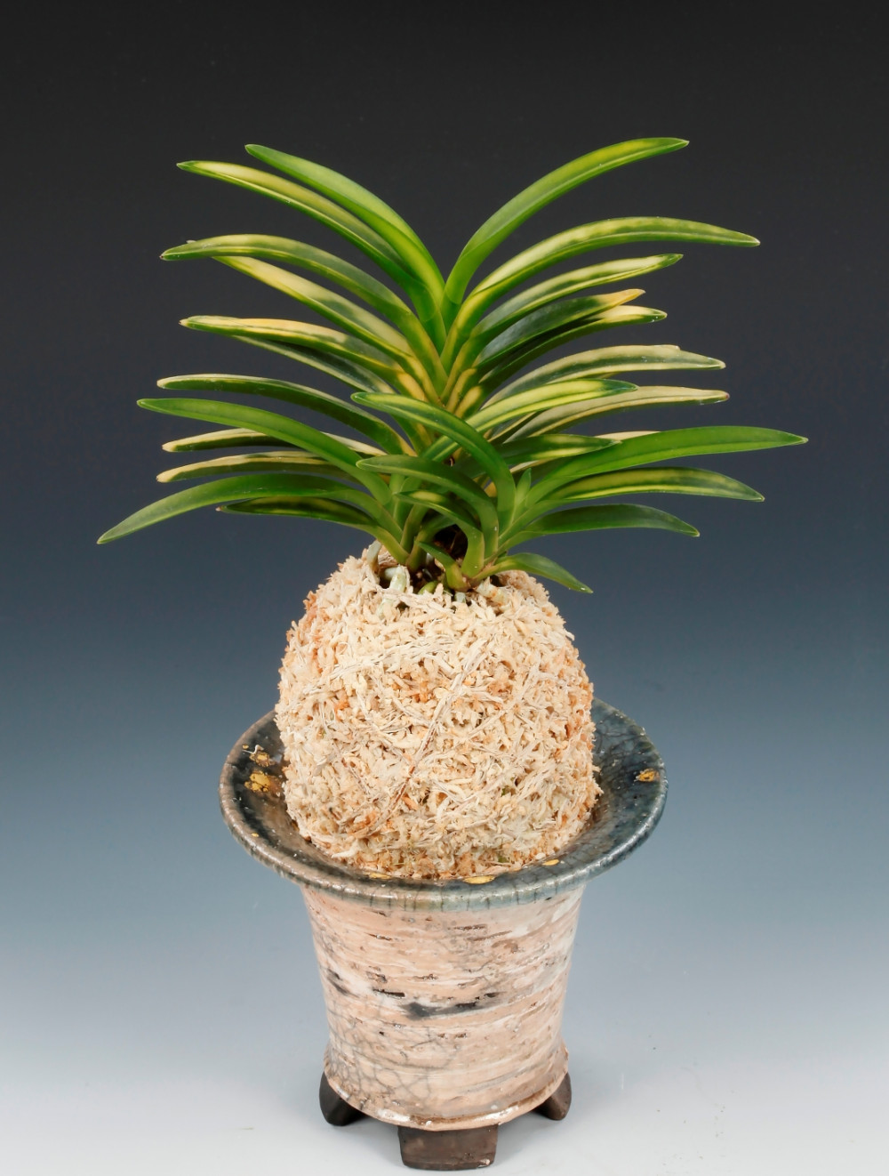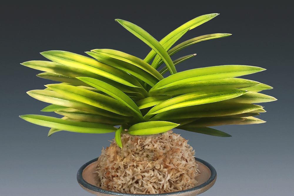 2014년 경남 창녕에 있는 아마미계 풍란 배양장에서 선별된 것으로, 호, 복륜(虎, 覆輪)의 복합 예(複合 藝) 품종이다. 천엽은 '환희천(歡喜天)'처럼, 전체가 白黃의 서반(曙斑) 바탕에 가장자리로 아주 좁게 감성(紺性)의 줄무늬를 두른 사(絲)복륜으로 나와, 다음 잎으로는 엽심(葉芯)으로부터 감중통(紺中通)을 흘리면서 안개 모양의 백황(白黃)색 구름을 띄워서, 호반(虎斑) 모양의 대복륜을 이루는 진품이다. 虎, 覆輪의 구름이 온화하게 흐르는 부드러운 분위기이면서, 임팩트가 강한 인상 깊은 절품(絶品)이다. 이 품종은 재배 환경에 따른 변화인지, 예(藝)의 폭이 커서, 때로는 전반의 호(全斑虎)처럼 보일 때도 있다. 잎은 엽조(葉繰)가 좋은 입엽성 희엽에, 푸른 잎이 우거진 버들의 모습이다.