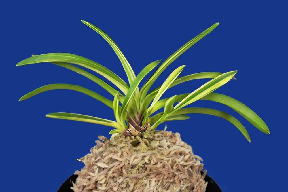 시마네(島根)현 산의 중형으로, 「모단 예(牡丹 芸)」 품종이다. 새잎의 천엽은, 황백색(黃白色)으로 올라가면서 점차 감호(紺縞)와 감신반(紺散斑)을 올리는데, 그 무늬는 3~5매까지 남았다가, 그 아래로는 어두워진다. 백황색에 감호(紺縞)가 어우러진 「모단 예(牡丹 芸)」로, 봄부터 가을까지 자라는 뿌리 끝은 깨끗한 루비 뿌리가 더한층 아름답다. 잎은 넓은 일반적인 희엽으로, 노수엽도 다소 섞는 아담한 자태에, 고상한 무늬와 어우러진 앙상블이 이 품종의 감상 포인트이다. 붉은 니축에 뿌리는 루비와 니근으로, 붙음매는 월형이다.