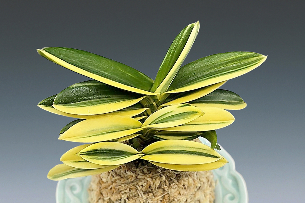 문향원에서 아마미계 풍란의 다중교배(多重交配)에 의한 육종으로 작출된, 대형 두엽의 백호(白縞) 품종이다. 예는 짙은 초록색 바탕에 흰 줄무늬(縞)가 폭넓고 깊게 흐르는 선천성의 반호계(斑縞系)로 매우 안정되어 있고, 장래 복륜으로 진화도 엿보이는 깊은 무늬성의 우수 품종이다. 모종의 유전자 계승에 따라서, 두엽으로 부르기 거북할 정도의 우람한 대형으로, 무늬의 순백(純白)과 짙은 감성(紺)의 대비가 탁월한 일품이다. 볼륨이 풍부한 대형의 잎은 두껍고, 폭도 넓다. 축도 크고, 잎 겹침(襟組)이 매우 좋은, 다이내믹한 모습이다. 니축에 니근으로, 붙음매는 낮은 산형이다.