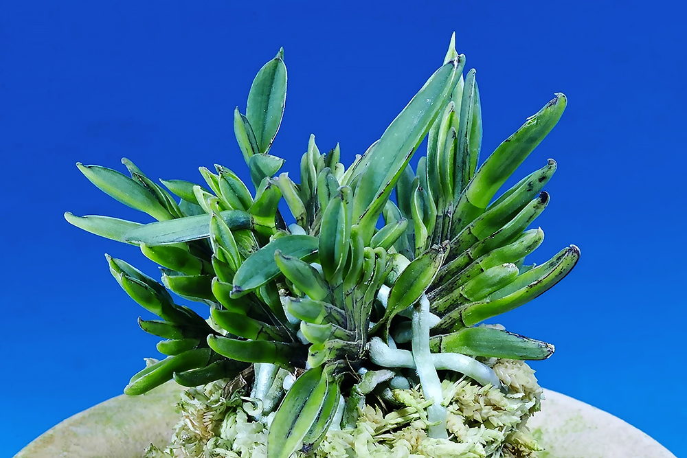한국에서 작출된, 아마미계의 소형 잎 변이 품종이다. 모종(母種)은 절입성(切込性)의 묵(墨)이 흐르는 개체에서 변이된 것으로, 단단하고 굳은 입엽의 통엽(樋葉)에, 잎끝에 콘페(Konpe)도 들어가며, 묵을 흘려 개성이 강한 소형 종이다. 특징은 잎 가장자리로 살짝 걸치는 이접반(耳摺斑)의 사복륜에, 견조선(堅條線)과 같이 묵(墨)을 흘린다. 특히 잎끝이 안으로 오그라든 갈고리처럼, 코가 오뚝 선 여인네의 전통 흰 코고무신처럼 귀여운 모습이다. 잎은 침엽(針葉)과 같은 좁은 입엽에, 잎 간격이 조밀하고 잎 유지(葉持)도 좋으며 붙음매도 변한 특징적인 모습이다. 햇볕을 강하게 하면 예가 응축되고, 약하면 느슨해져, 예가 무디어지는 경향이 있다. 꽃은 화판(花瓣)에 붉은빛이 약간 묻어나고, 꽃줄기는 분홍색이다. 일본에서는 '오우위문(五右衛門)'이라고 부르고 있다. 니축에 니근으로, 붙음매는 일자형에 가까운 얕은 파형이다.