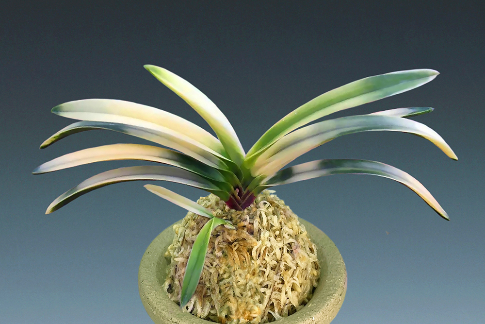 어느 농가 마당의 비자나무 위에서 1993년에 채취했다는 [금직(錦織)]의 유령엽(幽靈葉)으로, [신월전(新月殿)] 타입의 '전반호 예(全斑虎芸)' 품종이다. [금직]은 다양한 무늬를 나타내는 우수한 품종으로서, 싹(芽) 변화에 의해 유령엽으로 된 전반(全斑)이다. 서반(曙斑)과 함께, 잎끝에 녹조(綠爪)를 살짝 올려, 구름처럼 떠 있는 파란 하늘은 황홀하고 낭만적인 전경이다. 유령이라는 말은 자라지 않아 혼자 살아갈 수 없는 개체에 사용하지만, 생육하며 살아갈 수 있는, 본종과 같은 부귀란에 대해서는 '전반(全斑)'이라고 부른다. 따라서 본종은 '虎斑'으로 분류, '금직의 全斑虎', '艶姿'로 명명되었다. 짙은 니축에 총 루비근으로, 역엽(力葉)이 섞이는 대형 품종이다.