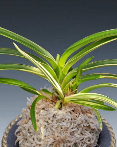 '화영(火影)'의 줄무늬(縞)에서 나온 설백복륜(雪白覆輪)이다. 이 품종은 임헌남 씨가 2022년에 '화영'에서 변화된, '화영의 縞' 개체를 재배 중에 복륜으로 진화한 것으로, 그동안 재배하면서 그 예(芸)의 고정을 확인하고 "일향관(一向冠)"으로 명명해, 증식에 힘쓰고 있다. 무늬는 선천성 설백복륜으로, '서출도' 타입의 하얀(白) 절입성(切込性) 삼광반(三光斑)에, 아래로는 구름의 호반(虎斑)도 동반하는 특수 예(芸)로, 맑고 단화(端華)하면서도 선연(嬋姸)한 분위기가 매력적이다. 호반인 '화영'이 縞와 더불어 복륜으로 변화는 경이롭고, 또한 매혹적인 총루비 뿌리까지 지녀, 찬란한 빛과 고운 운치가 잘 어우러짐이 미호(美好)하다. 바탕(紺地)과 무늬의 대비가 뛰어나다. 잎은 매끄럽고 고운 견지합(絹地合)에, 좌우로 평형한 희엽성으로, 노수엽도 섞이는 중형 종이다. 니축에 뿌리는 전체가 루비근으로, 붙음매는 월형이다.