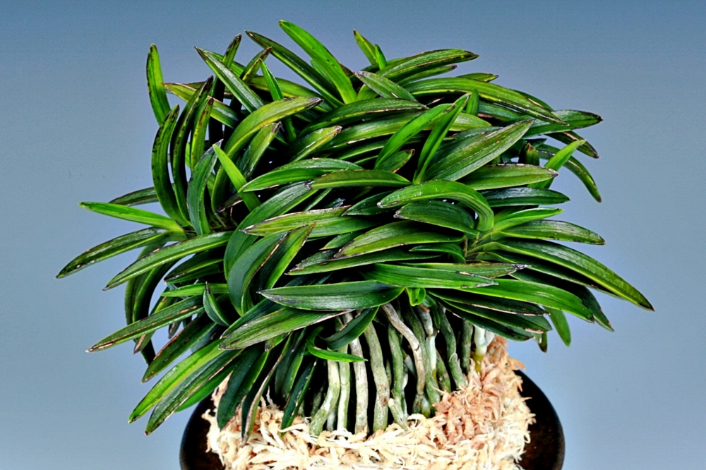 약간 서는 입엽의 중형 종이다. 잎 표면에 묵(墨)을 흘리는 예(芸)를 나타낸다. 니축(泥軸)에 묵류로서 한동안 무명으로 유통되었다가, 1993년도에 斉藤三男 씨 외 4명의 연명으로, "홍모단(紅牡丹"이라고 명명 등록되었다. 꽃은 필자가 보지 않았지만, 강한 햇볕에서 관리하면 분홍색 꽃이 핀다고 한다. 번식력이 왕성하고 기르기 쉬운 품종이다. 강하게 채광하면, 가을에 접어들면서 아랫잎에 소두반(小豆斑 : 햇볕을 강하게 쬐면 아래 잎에 니(안토시안)가 진하게 나오는 상태)이 강하게 나타나며, 등록 당시의 설명에서는 「금모단(金牡丹)과 묵류(墨流) 양쪽의 특징을 겸비한 예」라고 한다. 잎 폭은 다소 좁지만, 잎살은 두껍고, 잎 앞뒷면에 선명한 먹물을 흘려, 독특한 분위기를 가졌다. 니축에 니근으로, 붙음매는 월형이다.