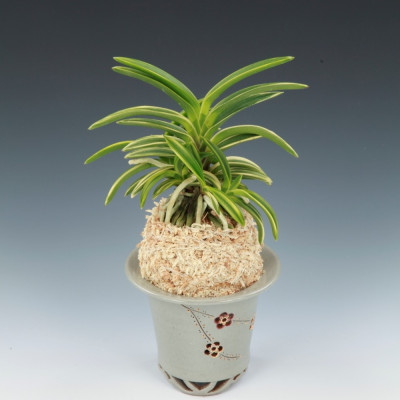 품종의 특징 : 아마미계로 백복륜(白覆輪)품종으로 천엽은 올리브그린으로 올라와 서서히 백색의 복륜으로 완성되는 후천성 백복륜 품종이며 수많은 아마미계 복륜중에서 비교적 식별이 쉬운 품종이다. 입엽성 희엽으로 크기는 중형종이며 니축에 니근으로 붙음매는 얕은 월형이다.