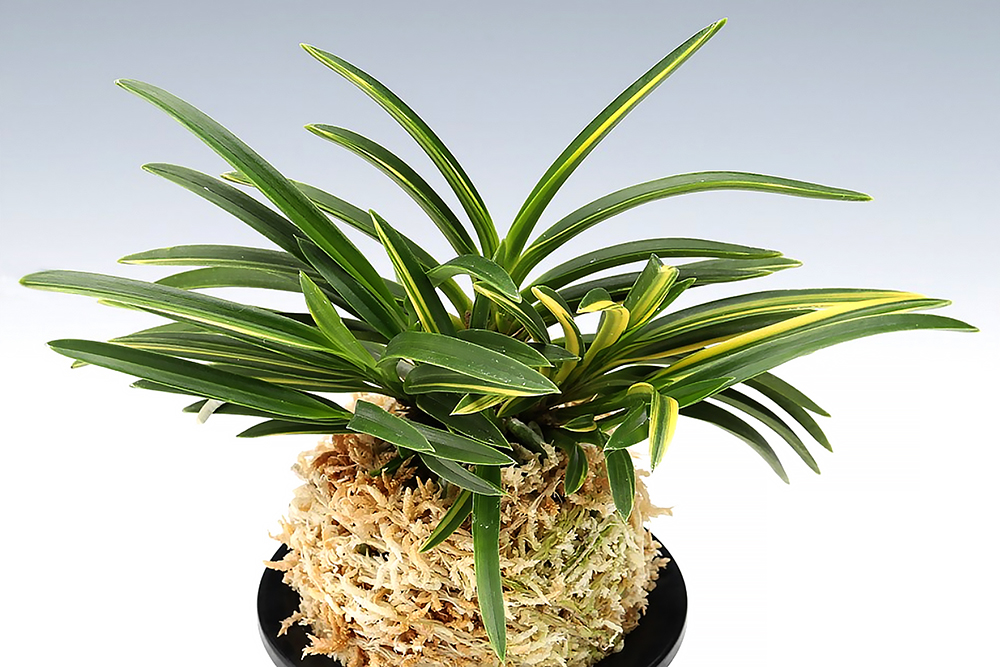 평엽(平葉)에 약간 가까운 희엽으로, 잎 살이 두꺼운 중형 품종이다. 선천성(先天性)의 백황호(白黃縞)가 흐르는, 균형감이 좋은 잎 자태가 특징적이다. 야마구치(山口)현 산으로, 산지 부근에 있는 유리황사(瑠璃晃寺)라는 아름다운 절 이름에서 "유리황(瑠璃晃)"이라는 이름 붙였다 한다. 하지만, 이 품종은 이미 많은 수가 여러 곳으로 분산되었기 때문에, 다른 곳에서 또 다른 이름이 붙여졌을 가능성도 있다. 축은 부위(軸元)가 약간 오염될 정도의 청축으로 느껴지지만 니축이며, 뿌리는 깨끗한 청근이다. 균형 잡힌 잎 형태와 백황 줄무늬의 대비가 좋아, 앞으로 기대할 수 있는 유망주라고 할 수 있다. 잎의 질감도 부드럽고, 보기에도 깔끔한 몸매에, 반 입엽의 자세가 샤프함을 느끼게 한다.