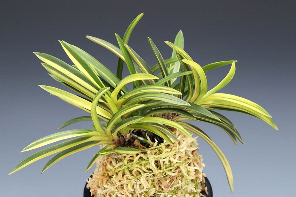 중형의 희엽으로, 잎 넓이와 잎 모양 등 모든 면에서 평균적인 풍란의 용모와 자태를 가졌다. 녹색 감성(紺性)이 옅은 바탕(地合)에, 밝은 연두색(萌黃色) 줄무늬(縞)를 흘리는데, 그 바탕색 때문에, 콘트라스트가 나빠 손해를 보고 있는 품종이다. 증식이 잘 되고, 수가 많아 입문 품종으로 되어 있지만, 상예품(上芸品)은 밝은 황호(黃縞)가 선명하여 관상 가치가 높다. 강한 햇볕에서 재배하면 무늬 색이 선명해지고, 그늘에서 재배하면 차분한 맹황색(萌黃色)의 무늬가 되어 버린다. 보통 좋은 縞는 미세하게 골고루 들어가는 호인데, 본종은 다소 선명도가 떨어지는 황호가 봉호(棒縞)처럼 거칠게 들어간다. 다른 품종의 거친 호는 고정성이 떨어지지만, 이 품종은 점점 더 아름다운 호로 진화해 가는 이상한 성질을 가졌다. 「조일복륜(朝日覆輪), 양명전(陽明殿)」의 부모(親木)다. 니축에 니근이지만, 무늬가 화려한 부분은 홍축(紅軸)으로 선명한 적근(赤根)에, 붙음매는 월형이다.