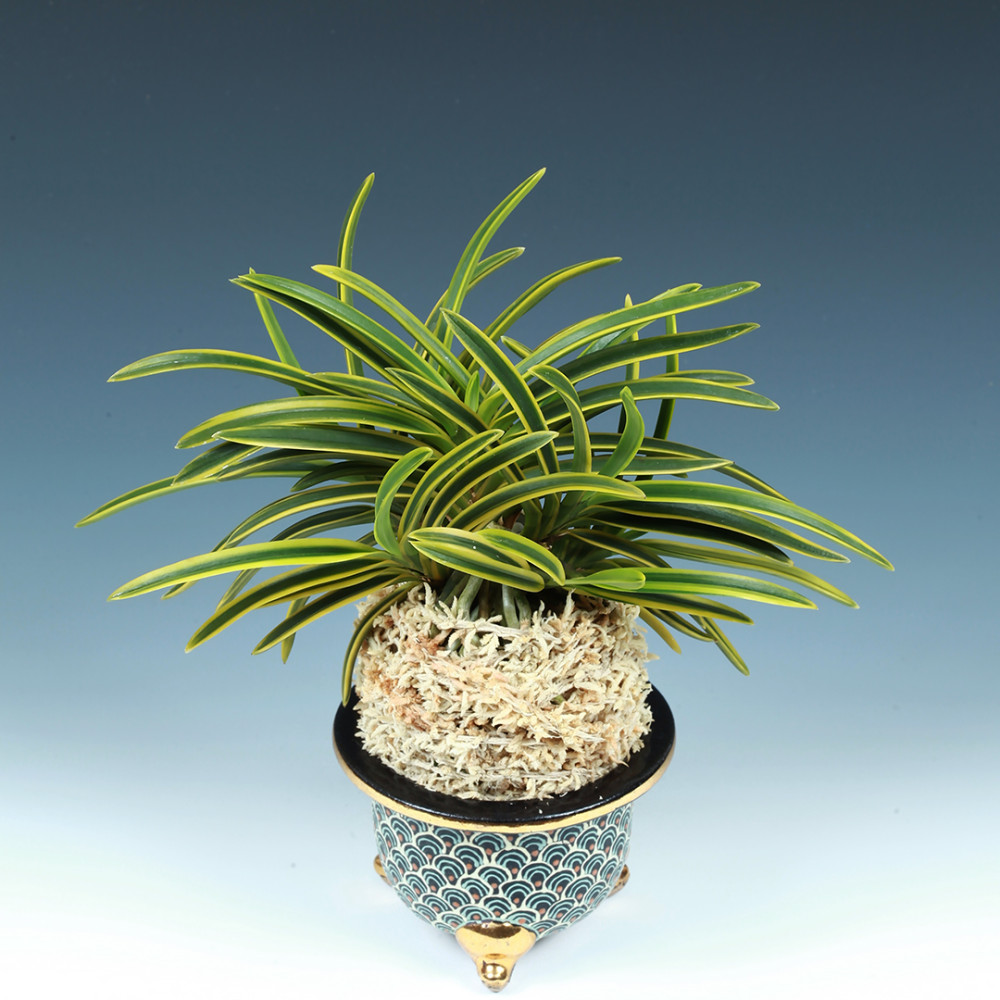 잎살이 두꺼운, 약간 대형의 희엽에, 무늬색(黃樺色, 황금빛으로 물든 자작나무의 잎)의 차분함이 손에 닿을 듯 묵직함이 감돈다. 사가미국(相模国, 현재 神奈川県)의 겸창산(鎌倉山)에서 채취되었다. 두툼한 잎살에 힘 있는. 볼륨만점의 희엽이다. 천엽이 나올 때는 연두색(萌黄色)의 복륜으로 자라서, 황색으로 선명해지고, 초가을에는 황화색(黃樺色)으로 변한다. 이때 무늬의 선명성(鮮明性)은 한결같이 않아, 언뜻 보아 호반복륜(虎覆輪)처럼 보인다. 또 추위를 맞으면 오렌지 복륜처럼 보이기도 해, 다른 품종에서는 느낄 수 없는 독특한 분위기를 즐길 수 있다. 이 품종이 선천성으로 변한 것이 '비금(羆錦)'이라고 생각된다. 변화 종과의 기록은 어느 자료에도 없지만, 비슷한 점이 많다. 니축에 나근으로, 붙음매는 월형이다.