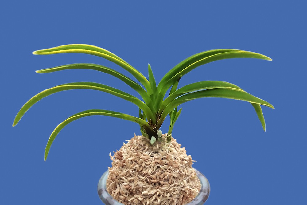 아마미계 풍란 무지물(無地物) 실생에서 출현한 변이(変異) 개체이다. 한국의 농원에서는 보통 풍란을 개화주(開花株)로 키워 시장에 출하하고 있는데, 그 풍란의 묘목(苗木) 중에서 선별된 것이다. 현재는 아마미 특유의 큰 사이즈로, 조금 특이한 타입의 복륜으로 고정되었다. 시즈오카(静岡)의 笠原茂 씨가 일본에서 키우면서, 예(芸)가 고정됨을 확인하고 "엄미천산(奄美天山)"이라고 명명, 증식에 노력하고 있는 향후 기대 품종이다. 아래 잎(下葉)은 중투(中透) 무늬를 이루지만 본엽(本葉)이 되면 복륜으로 바뀐다. 출아(出芽)는 무지이지만, 세 번째 정도부터 복륜이 뚜렷해진다. 이 복륜은 기존에 없던 호반 복륜(虎覆輪)과 같은 경계가 분명치 않은 신비한 예(芸)로 매력적이다. 잎은 폭도 넓은 아마미 특유의 희엽이다. 니축으로, 붙음매는 월형이다.
