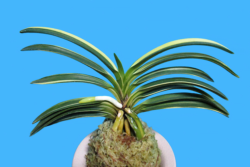 미야자키현(宮崎県) 산의 백황호(白黄縞)로, 규슈(九州) 신답게 웅장한 모습이다. 짙은 니축(泥軸)이면서도, 연한 청근에 가까운 뿌리 끝이 개성적이다. 20세기 말에 발견되어, 앞으로 21세기를 짊어질 줄무늬 품종(縞物)이 될 것이라고, 오사카(大阪)의 水迫実 씨가 명명했다. 다른 품종 때도 언급했지만, 아 호 계통(縞物)의 증식은 많은 노력을 필요로 한다. 호의 변화가 난폭해서, 좋은 무늬의 계승은 여러 촉 중에 겨우 1촉 정도 비율이다. 그러므로 복륜이나 무지물(無地物) 등 안정된 품종보다 몇 배 이상의 시간이 걸린다. 이 품종도 그 이름처럼 「신세기」에 날아오를 날이 언제가 될 것인가. 증식을 기다리는 대형 호물(縞物)이다. 잎은 폭이 넓은 대형의 희엽으로, 다소 후천성의 백황호(白黄縞) 품종이다. 짙은 니축에 청근에 가까운 니근으로, 붙음매는 월형이다.