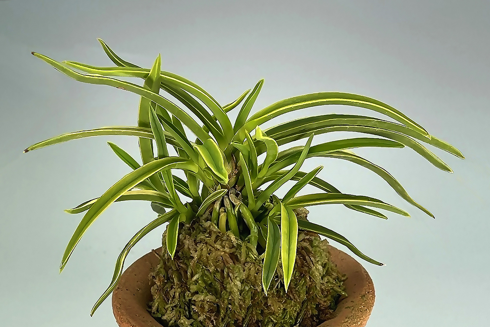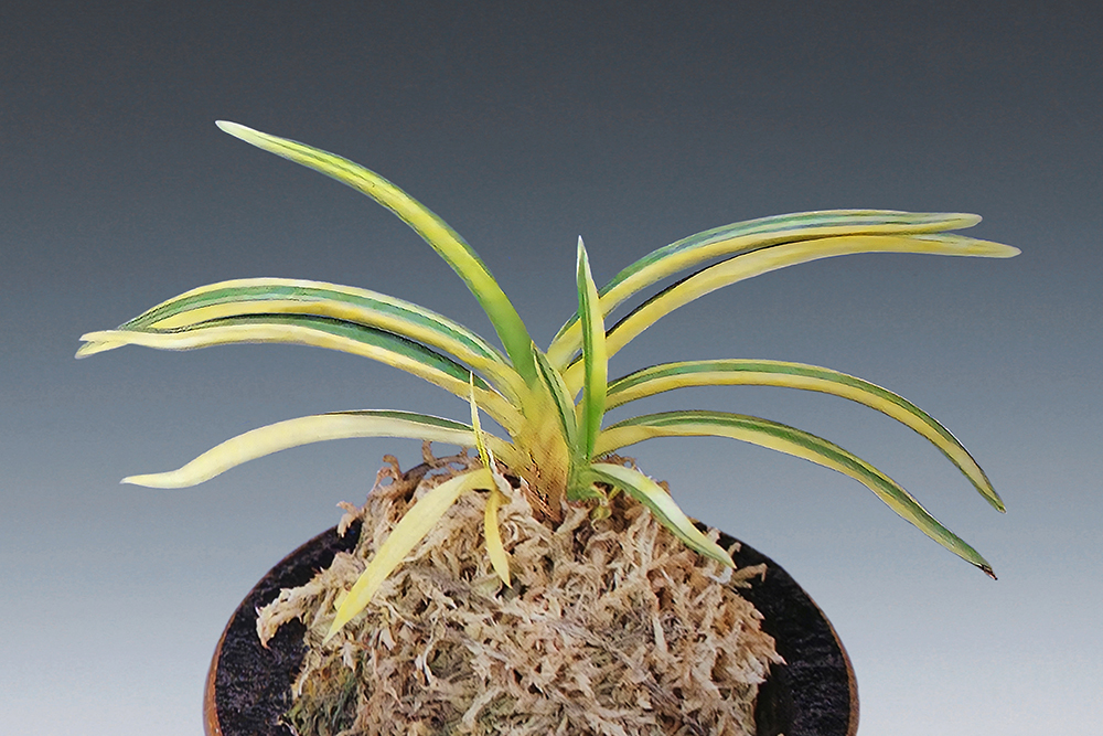 1990년도 富貴蘭 銘鑑에 등록된 '출운금반(出雲金斑)'에 줄무늬(호)가 들어간 것이다. 부모(親)의 잎 모양과 반예(斑芸)인 「금반예(金斑芸:잎 표면에 금가루를 뿌린 듯한 노란 무늬(黃色斑)」는 그대로 두고, 그 위에 선천성의 백황호(白黃縞)가 흐른다. 현재는 백황호(白黃縞)와 은은한 황호(黃縞)의 두 타입이 유통된다. 무늬가 화려한 개체나, 빗살무늬(櫛目柄) 중 최상의 무늬 개체도, 신아(子) 붙임이 좋아 잘 늘어난다. 이예품(二芸品)이지만, 수수한 줄무늬일수록, 호와 승반(乗斑:잎 표면 전체에 확실하지 않은 희미한 虎斑이 나온 것. 잎 뒷면에서 보면 복륜처럼 보이지만, 잎 뒤까지는 빠지지 않는 무늬)이 뚜렷하게 확인된다. 잎은 중형에 속하지만 다소 크며, 잎끝이 예리한 희엽으로, 노수엽도 섞이는 독특한 잎 모양으로 한눈에 그 특징을 알 수 있다. 니축에 니근으로, 붙음매는 월형이다.