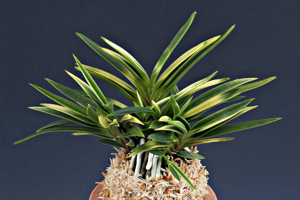 도쿠노시마(徳之島) 산, 아마미계로서는 처음 등록된 기념비적인 품종이다. 2003년도에 등록된 아직 새로운 품종이지만, 이미 호반(虎)의 대표 격인 품종으로, 노수엽을 곁들인 호쾌한 입엽에 백황(白黃)의 서호반(曙虎斑)이다. 천엽은 백황색(白黃色)의 서반으로 나와, 얼마 안 있어 어두워지지만, 화려한 부분은 백황색의 호반으로 남는다. 그 투명하게 비치는 듯한 호반의 아름다움도 뛰어나지만, 아마미계의 특징인 건강함도 큰 매력이며, 비료를 매우 좋아해, 쑥쑥 자라는 모습은, 보는 것만으로도 기분이 좋다. 호반은 무늬 내기가 어려운 품종이 많지만, 이 품종은 생장이 멈추지 않는 한 비교적 쉽게 무늬를 나타난다. 다만 너무 큰 대주(大株)로 키우지 않는 편이 무늬 발색이 더 좋은 것 같다. 상예품(上芸品)은 호반도 좋고, 뿌리 끝의 색도 루비에 가까워져 인기가 높다. 니축에 뿌리 끝은 옅은 니근이, 점차 루비근에 가깝게 되며, 붙음매는 월형이다.