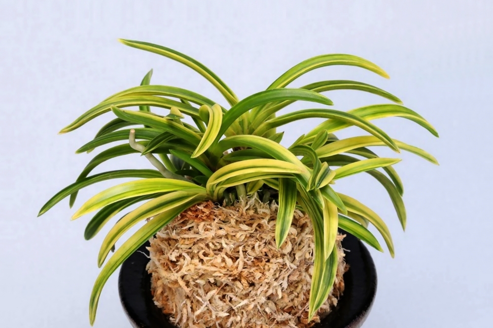 '부악(富嶽)'은 약 1970년경에 등장해 일약 인기 품종이 되었다. 이 품종은 히로시마(広島)의 高木農園이, 고시키 섬(古志岐島) 산의 자연 채취품으로, 약간의 산반(散斑)이 들어간 것을 실생 작출한 것이 출발점이다. 그 자식, 손자, 증손자들이 각지에서 반복적으로 실생하여 거대한 그룹이 형성되었다. 첫 실생은 플라스크에서 밖으로 나와 기르면, 청엽(무지)에서도 산반이 나타났다. 실생 형제이므로 다양한 잎 모양이 있으며, 현재는 '부악'을 부모로 명품이 교배되어 잎 형태의 다양성은 더욱 늘어나고 있다. 청엽에서 우연히 출현한 산반이지만, 무늬의 유전성은 매우 강하다. 다양한 잎 모양 중 특히 특징이 두드러진 것으로, 또 다른 개체명이 붙어 있다. 크고 두꺼운 '대납언(大納言)', 무늬가 하얗게 변하는 '부악보(富嶽宝)', 그리고 황산반(黃散斑)에 청축인 '청축부악(靑軸富嶽)' 등으로, 「부악 계통」만으로도 명감을 제작할 정도로 여러 품종이 있다. 니축에 니근으로, 붙음매는 월형이다.