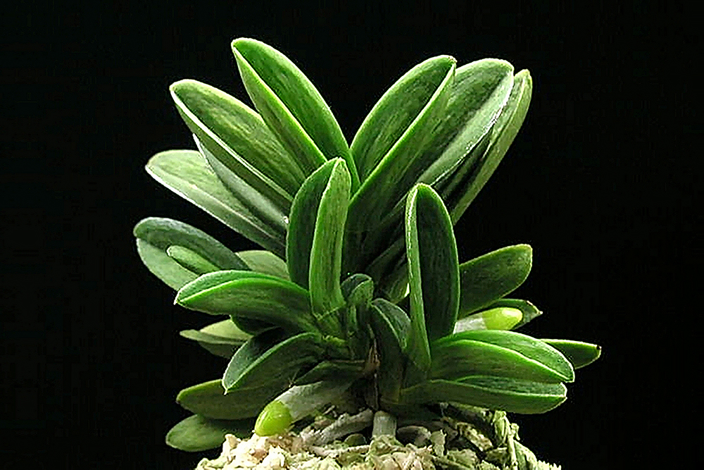 감성(紺性)이 옅은 입엽성이다. 바탕의 라사(羅紗地)가 특징인데, 그 강약에 따라, 본예품(本芸品)이라 하는, 라사가 강한 개체(옛날에는 보통품과 구별하여 '흑모단(黒牡丹)'이라 불렀다)와 라사의 약한 개체(장엽으로 잎 모양이 극단적으로 바뀐다), 두 종류가 있다. 꽃도 본예품은 하늘피기(天咲)이고, 장엽(長葉) 타입은 일반적인 꽃이다. 이 시대(1603~1868년) 명감에도 그 이름을 남기지만, 아직도 본예품(本芸品)은 적다. 본종도 실생종이 다수 작출되어(자연종과 구별하여 '청모단(青牡丹)'이라 함), 중급품에서 보통품종으로 옮겨갔다. 그러나 본예품은 매력이 넘쳐 한 화분쯤은 키우고 싶은 뛰어난 일품이다. 본예품은 둥근 잎으로, 라사가 강하고 잎이 뒷면으로 휘어지며 공작(孔雀)이 날개를 펼친 듯한 모습의 소형 종이며, 장엽 타입은 라사가 약한 중형 종이다. 청축에 청근으로, 붙음매는 일자(본예품)와 월형(장엽 타입)이다.
