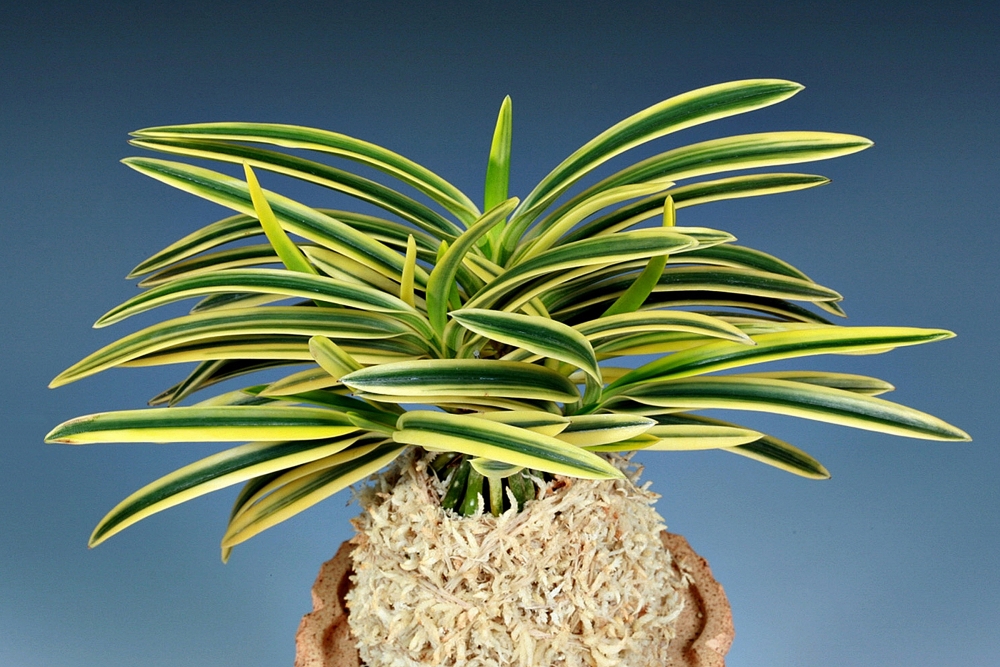 이 품종에 잘 어울리는 이름이다. 완만한 곡선을 부드럽게 그리는 희엽에, 약간 후천성의 황복륜을 두른다. '부귀전(富貴殿)'과 닮았고, 천엽이 선, 후천성이냐의 차이와, 아래 잎이 노랑(黃色), 유백색(乳白色)의 차이가 있을 뿐, 잎 모습은 많이 닮았다. 그래서 예로부터 '부귀전'과 좋은 한 쌍의 부부 품종이라고 불렸다. 산지(産地) 미상으로, '대복륜(大覆輪)' '대전(大典)'의 별칭이 있었다고 한다. 또한 크고 넉넉한, 개체를 '천교(天橋)'라고 하여, 옛날에는 '만월'과 구별하였으나, 일본 부귀란회에서 품종 정리를 할 때, 다른 품종이라고 해도 분간이 어렵다는 이유로. '만월'에 통합하였다. 연두색(萌黃色)으로 자라며, 잎끝에서 황색으로 선명해지는 황대복륜이다. '부귀전'은 어디서 키워도 '부귀전'으로만 보이는데 비해, 이쪽은 기르기에 따라서 인상(印象)이 크게 달라, 보통에서 초고급 품종으로 보이는 개체까지 다양한 모습을 보여, 작품 겨루기에는 안성맞춤인 품종이다. 니축에 니근으로, 월형이다.