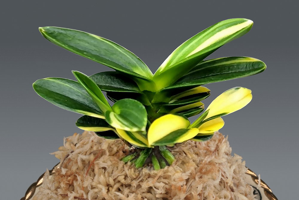 문향원에서 아마미계 풍란의 다중교배(多重交配)에 의한 육종으로 작출된, 대형 두엽의 백호(白縞) 품종이다. 예는 짙은 초록색 바탕에 흰 줄무늬(縞)가 폭넓고 깊게 흐르는 선천성의 반호계(斑縞系)로 매우 안정되어 있고, 장래 복륜으로 진화도 엿보이는 깊은 무늬성의 우수 품종이다. 모종의 유전자 계승에 따라서, 두엽으로 부르기 거북할 정도의 우람한 대형으로, 무늬의 순백(純白)과 짙은 감성(紺)의 대비가 탁월한 일품이다. 볼륨이 풍부한 대형의 잎은 두껍고, 폭도 넓다. 축도 크고, 잎 겹침(襟組)이 매우 좋은, 다이내믹한 모습이다. 니축에 니근으로, 붙음매는 낮은 산형이다.