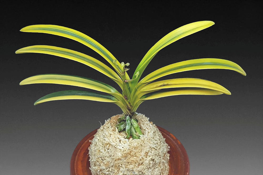 모종인 '금광금(金廣錦)'과 같은 모양의 잎은, 힘이 느껴지는 위풍당당한 모습이다. 1950년대 이전의 富貴蘭 銘鑑에서는 이 이름을 볼 수 없으나, 모종의 '금광금'은 제1호(1939년)부터 등장해, 오래된 품종으로 보인다. 황호(黃縞)의 모종이 대복륜으로 된 것으로, 잎은 윤기(葉艶)가 나고 폭도 넓으며, ㄱ자 모양으로 꺾이는 역엽(力葉)의 특징도 '금광금'과 같다. 좋은 무늬(上柄)를 가진 모종이 위로부터(天葉) 복륜으로 변화하는 경우가 많다. 대복륜이므로 나오는 신아(子)는 유령이 많고, 여러 촉의 대주는 거의 없다. 출아(天葉)는 엷은 황색으로 자라지만, 잎끝으로부터 바로 황색으로 선명해지는, 훌륭한 황복륜이다. '금광금'에서 직접 나오는 것이 대부분이지만, 그 수는 적어서, 찾아도 쉽게 구할 수 없는 품종이다. 니축에 니근으로, 붙음매는 월형이다.