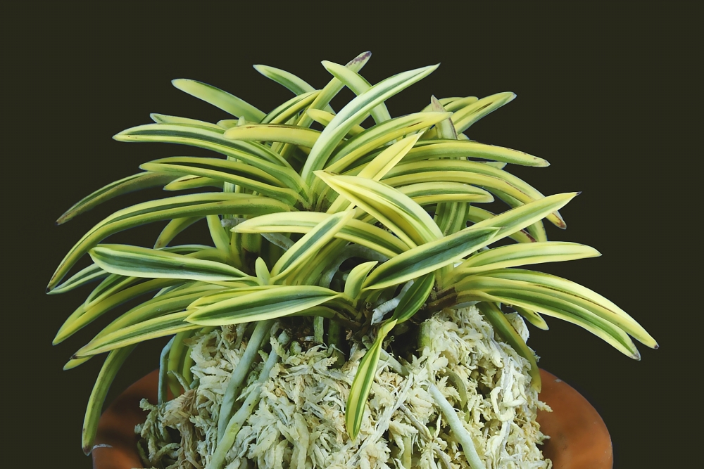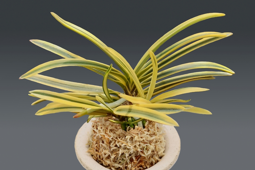 중형의 황복륜으로, 명품 '서출도(西出都)'의 변이종이다. 언뜻 보면 극황(極黄)의 대복륜으로, 도저히 모종으로부터의 변화종이라고는 생각되지 않을 정도이다. 모종은 흰색(白)의 절입복륜(切込)이라는 특징을 가진 가졌지만, 본종은 선천성의 극황대복륜이 되어, 1983년경에 日本 시즈오카(靜岡縣)에서 변화했다. 무늬가 잘 유지되지 않아서, '왕관'이라 할 수 있는 범주에 속하는 개체는 적다. 서출의 황복륜, '황금학(黃金鶴)'과 구별이 어려운 점도 있는데, '황금학'의 무늬색은 서출의 흰색이 노랗게(黃)되었을 뿐이지만, '왕관'은 대복륜이다. 본종은 기르다 보면, 子(신아)는 감관(紺冠)을 쓴 화려한 모습으로 나와 복륜으로 변해 성장하는 것과 그대로 화려해지는 경우가 있다. 좋은 예품(上芸品)은 후자의 경우이므로, 많지가 않다.