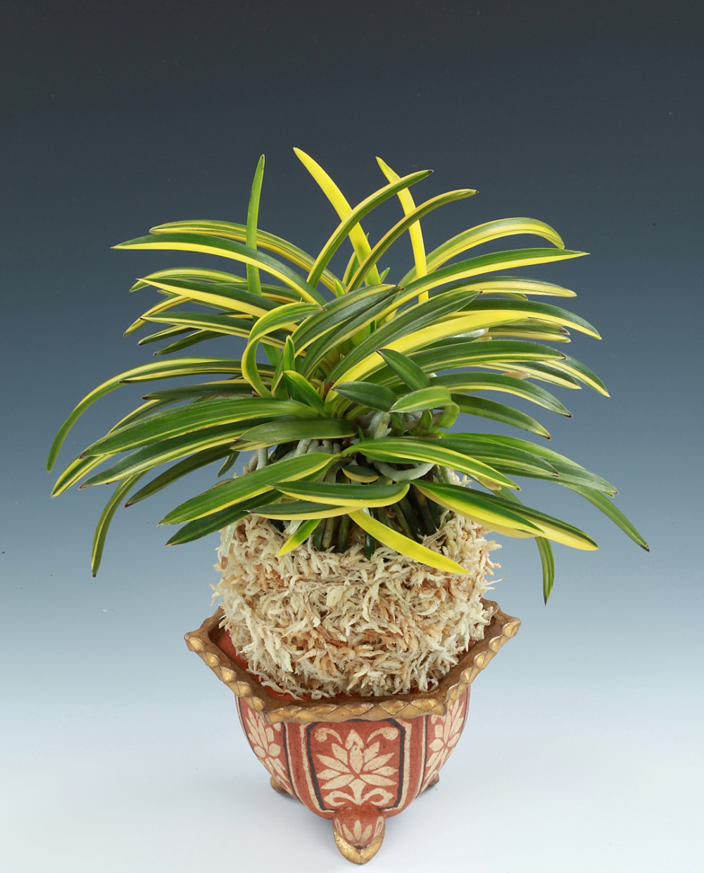 잎은 다소 직선형(直刀型)이며, 잘 갖추어진 중형 품종이다. 미에현(三重県. 伊勢国) 산으로, 복륜이 되면 '금갑복륜(金甲覆輪)'이 된다. '보금(寶錦)'과 자주 혼동되지만, '보금'은 초가을에 무늬 색이 백색에 가까워져 극황색이 되지 않는 점과, 잎 모양이 희엽이고 잎 광택이 본종보다 강한 것 등으로 구분된다. 두꺼운 잎에 약간 후천성의 노란 줄무늬(黄縞)가 들어간다. 출아(出芽) 때 무늬는 뚜렷한 연두색(萌黄色)으로 나타나 극황색으로 선명해진다. 가을에는 특히 노란색(黄色)이 밝아져, 부귀란 중에 으뜸으로 평가된다. 잎은 두껍고 반직선적인 중형으로, 잎 표면이 매끄럽고 결이 고운 견지합(絹地合)이다. 니축에 뿌리끝은 약간 옅은 니근으로, 붙음매는 월형이다.
