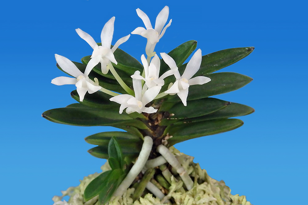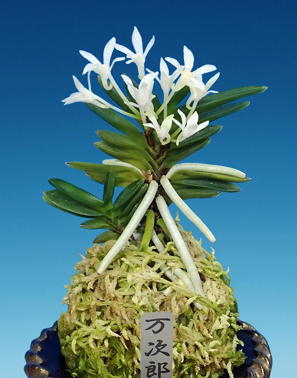 고치현(高知縣)의 土佐淸水市 足摺 산으로, 무지 엽 변아 두엽 품종이다. 처음 채취 때의 대부분은 산지를 떠나 고사(枯死)했고, 겨우 나머지 1 개체만을 현 소장자(野村風蘭研究室)가 입수 재배하고 있는 희소품이다. 잎 모습은 다소 露受葉 風(이슬을 받을 듯)으로, 끝이 뾰족한 독특한 분위기를 가졌으며, 붙음매는 낮은 산형으로 니축 니근이다. 잎 뒷면은 짙은 감성(紺性)의 줄무늬(縞)도 볼 수 있는 부분도 있으므로, 앞으로 변화가 기대된다. 꽃 모양도 독특한 특징이 있는데, 꽃잎이 조금 길어서 완전하게 개화하지 못하고 살짝 오므린 채 개화되는 꽃도 있다. "万次郞"은 산지의 위인처럼 씩씩하게 자라기를 바라는 뜻을 담고, 또한 소장자가 이 지방 출신임을 고려해 野村風蘭研究室에서 명명한 것이다.