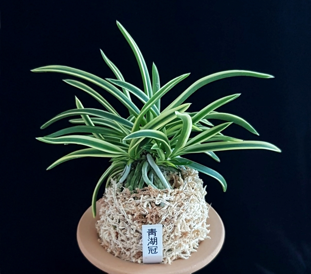 문향원에서 아마미계 풍란 실생으로, 처음부터 복륜으로 태어난 삼광중반의 설백(雪白) 복륜이다. 선천성의 복륜은, 잎끝으로부터 설백(雪白)의 조복륜(爪覆輪)으로 오르면서 삼광중반(三光中斑)의 대복륜을 이루는 정갈한 일품이다. 특히 신아의 한두 잎은 중투(中透)로 나오며, 그다음 잎은 삼광풍(三光風)으로 완성되는, 복륜의 확실한 예(芸)를 나타낸다. 바다의 빛 하늘색 바탕의 짙은 감성(紺性)에, 곱고 청아한 흰 구름이 흐르듯, 색 대비가 도드라진, 산뜻한 느낌으로 유려하면서도 품격이 있다. 잎은 넓으며, 완만하게 휘어지는 반 희엽에, 노수엽도 섞는 아담한 형태로, 중형에서 큰 부류에 속하는 핸섬한 모습이다. 옅은 니축에 니근으로 붙음매는 월형이다.