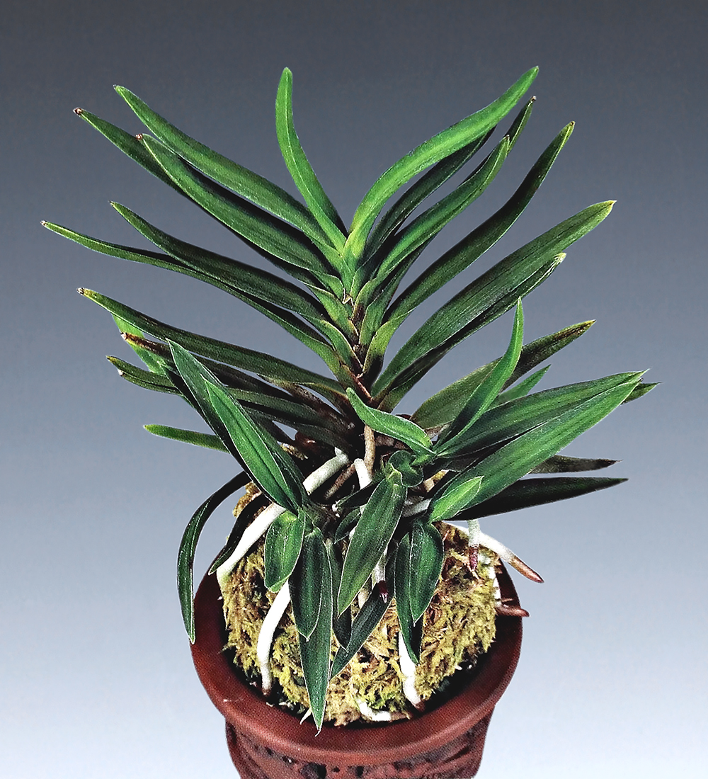 아마미계의 감복륜(紺覆輪) 품종이다. 이 품종이 지닌 감복륜 예(紺覆輪 芸)에 한해서는, 감성(紺性)의 강함과 깊이, 잎살의 부풀어 오름, 그리고 위로 두 팔 벌려 받쳐 든 검엽(剣葉), 또한 특유의 꽃 변이까지, 이보다 더 뛰어난 것은 없을 정도다. 무늬 때문에 잎 모양에 변화를 일으켜, 안으로 휘어진, 이른바 검엽(劍葉)이 되었지만, 그 이외는 '금감관(錦紺冠)'과 매우 비슷한, 감복륜의 절품(絶品)이다. 꽃도 「고도지설(古都之雪), 금감관(錦紺冠)」과 마찬가지로, 도마뱀붙이의 손과 같이 꽃잎 끝이 넓고 둥근 큰 꽃으로, 이 타입 특유의 변화된 꽃이다. 잎 겹침이 매우 좋아 그냥 두면 30매 이상 되고, 또한, 성목(成木)이 될수록 축원(軸元)에서 위로 오르는 흰 갓 줄도 눈에 띈다. 아마미 계열에 비하면 꽤 콤팩트하고, 비슷한 '금감관'보다 조금 더 작다. 또한 예(芸)가 비슷한 '녹염(綠炎)'도 본종과 닮았다. 니근으로, 붙음매는 일자와 비슷하다.