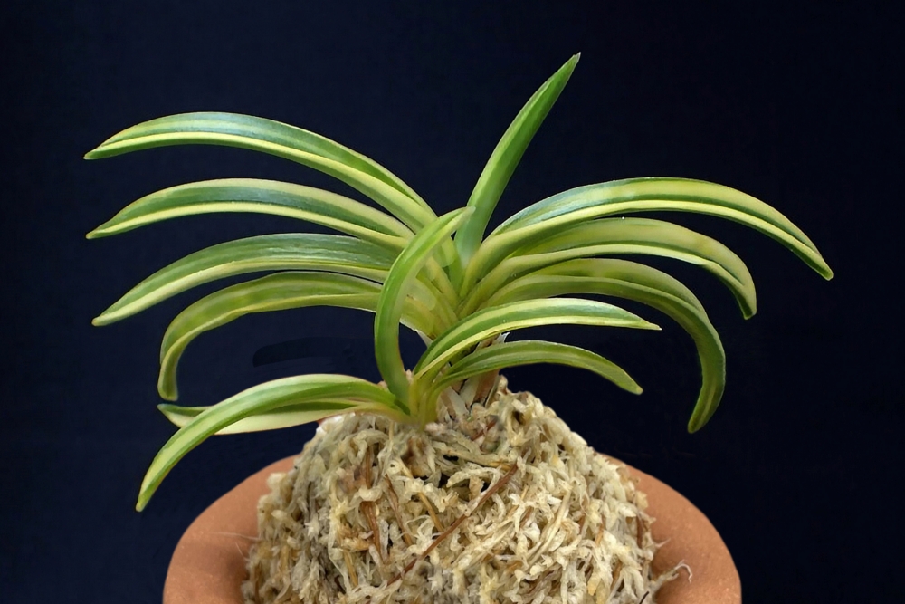 2004년경 '일월광(日月光)'의 셀프 실생으로 나온 일월광호(日月光縞), 즉 '일월금(日月錦)'(호반(虎斑)에 白黃縞 품종)에서 다시 복륜으로 진화한 것이다. 예(芸)의 복륜은 선천성으로, 순백(純白)을 두르는 삼광반(三光斑)이다. 모종인 縞 개체의 실생자는 복륜 개체를 얻고자, '일월금(일월광호)'의 꽃으로, 셀프 실생을 여러 번 시도했지만, 한 번도 성공하지 못하고 포기하던 중에, 다행히 줄무늬 개체(일월금) 자체가 복륜으로 변화한 것이다. 모주(親株)는 실생이지만, 이 개체는 모주 자체가 복륜으로 자연 변화한 것으로 그 의미가 매우 깊다고 할 수 있다. 잎은 중형에, 원을 그리듯이 크게 퍼지는 희엽이다. 전체적으로 밸런스감이 좋아, 아름다운 잎 모양을 이룬다. 청축에 청근으로, 붙음매는 월형이다.