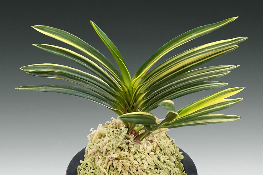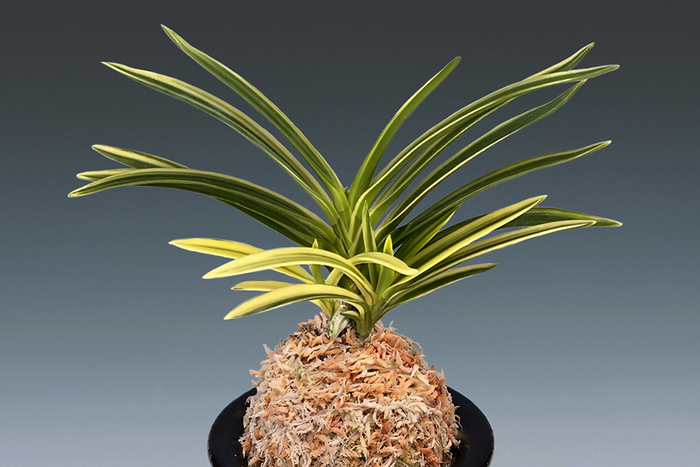 미야자키산(宮崎産) 청축 청근의 백황호(白黃縞) 품종이다. 새로 나오는 잎은 감바탕(紺地)에 흰빛을 띤 밝은 연두색(萌黃色) 줄무늬로 오르며, 곧 백황호로 선명해지는, 특징적인 존재감의 일품이다. 색 대비가 초롱초롱하게 빛나는, 훤칠한 모습이 인상적이다. 신아에서 복륜으로 될 것 같은 子도 보여, 기대감을 주는 품종이다. 잎 바탕(地合)은 '천우(天優)'처럼 잎 질감이 고급스럽고, 입엽의 깔끔한 인상은 '청량전(淸涼殿)'에 가까우며, 청근의 뿌리는 굵은 편이다. 잎은 폭이 넓은 노수엽에, 단단한 잎 간의 간격(筬)과 입엽성 희엽이 어우러져, 전체적으로 훌륭한 모습이다. 상반원(常盤園)의 어른(松村繁三郎)이 "청부금(淸富錦)"으로 명명했으며, 한때는 '고사(高砂)'라는 별명도 가졌다. 붙음매는 월형이다.