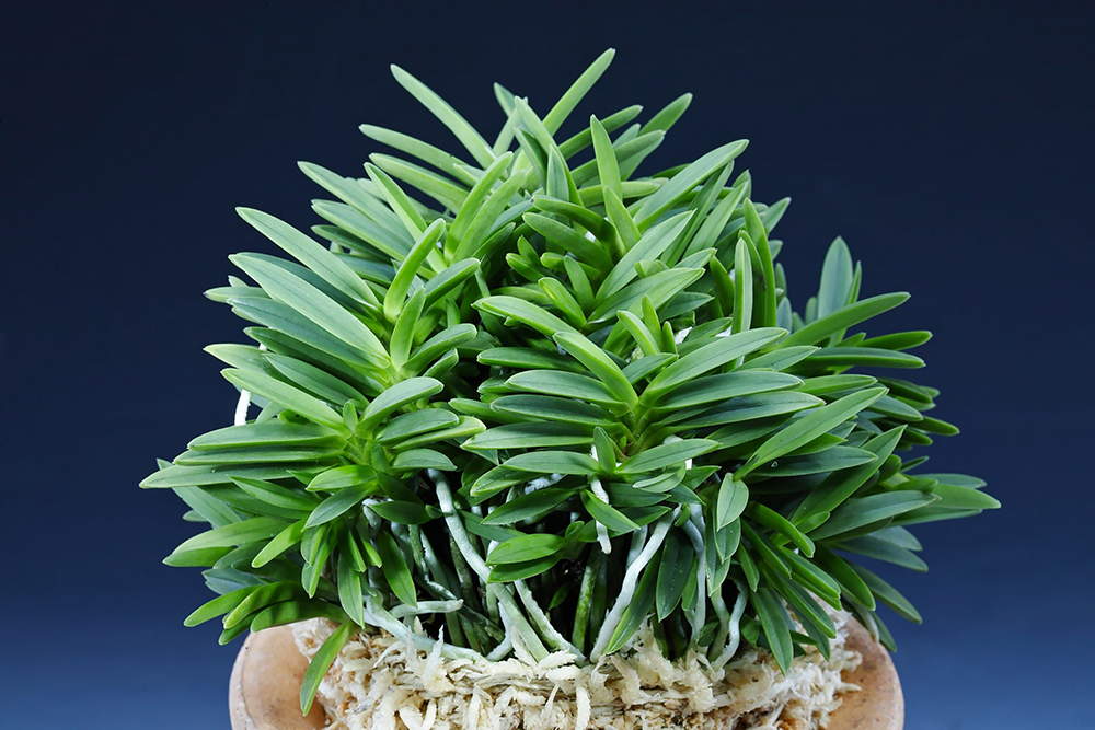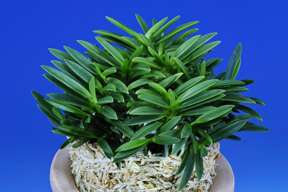 국동반도(國東半島)의 야산에서 채취한 왜성종(矮性種)에서 선별한 소형의 침엽 품종이다. '추보선(萩宝扇)' 타입이지만 그보다는, 잎 길이 4㎝ 전후, 폭 5㎜ 정도로, 새싹(子)이 잘 나와 대주로 만들기 쉽다. 이 품종은 여름철의 새잎은 드물게 흰(白) 이접반(耳摺斑)이 나오기도 하는데, 잘 보면 녹황색(萌黃) 바탕에 감(紺)의 중반 같은 느낌도 보인다. 일반적인 침엽의 특징은 평범하고 잎 겹침(葉重)이 좋지 않은 편이지만, 이 품종은 집합미(集合美)의 아름다움은 뛰어나서 침엽 중에서 가장 보기 좋은 품종이다. 또 취미 원예의 세계는 왜성(矮性) 품종이 소중해서, 작으면 작을수록 좋다는 경향이므로, 이 품종은 작은 거인이라 할 수 있다. 이 품종은 산지와 연관하여 '국동지설(國東之雪)'이라고도 한다. 엽조(葉繰)가 좋은 두엽의 침엽(針葉)으로, 사랑스러운 크기에, 좌우의 균형이 잘 갖추어진 모습이 아름답다.