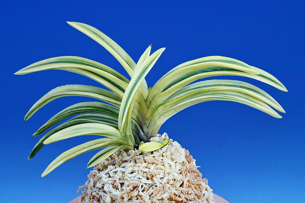 "용천관(용천금복륜)"은 원래 「고천수의 백호(高千穂白縞)」인 '용천금(龍泉錦)'에서 대복륜으로 진화한 것이다. 복륜은 선천성으로, 천엽에 송엽(松葉) 무늬를 섞는, 백황(白黃)복륜으로 되면서 황색(黃色)이 눈에 두드러지게 느껴지는 웅대한 모습이다. 원래는 '고천수의 백호(高千穗의 白縞)'로 부르던 것이 2002년도에 "용천금"으로 정식 등록되었으며, 그 '용천금'에서 복륜으로 변화한 것이 본종이다. 한때는 이 품종을 '월륜(月輪)'과 혼동했으나, '월륜'은 '고천수'의 백호 자체가 복륜으로(백호 자신은 소멸) 진화함에 따라 별개의 품종으로 정리되었다. 잎은 바탕의 감성(紺性)이 짙은 입엽성 희엽으로, 잎 겹침이 잘 정돈된 당당한 보습이다. 니축에 니근으로, 붙음매는 월형이다.