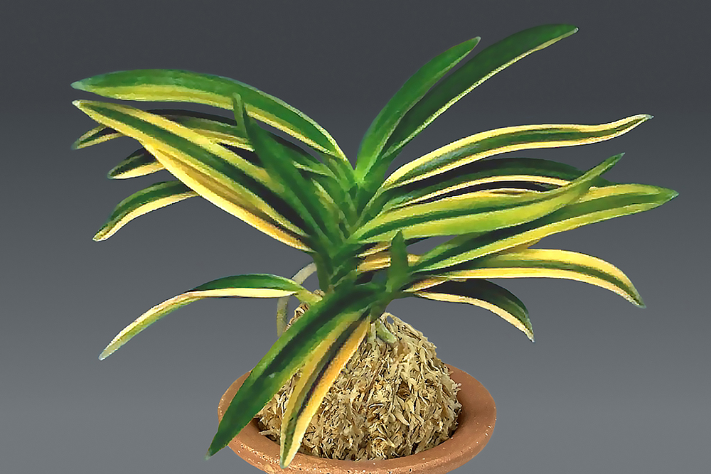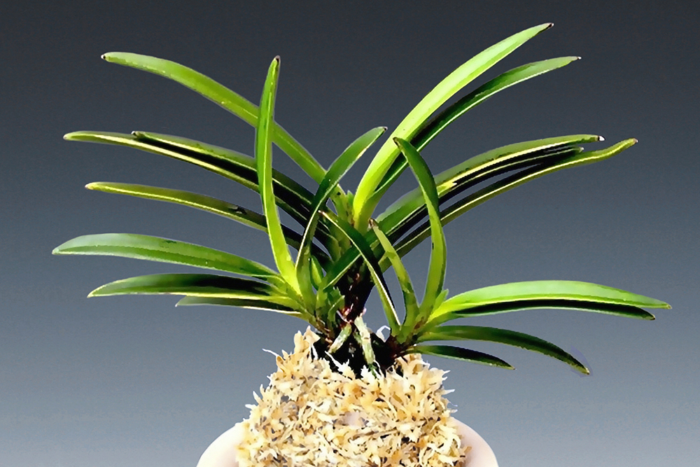 아마미계 풍란 실생에서 변이된 대형의 縞 품종이다. 무늬는 옅은 녹색 바탕에 짙은 감호(紺縞)와 황호(黃縞)가 함께 흐르는 예(藝)로, 지금까지 없었던 새로운 타입의 줄무늬 품종이다. 감호는 천엽에서부터 흐르고, 후천성(後天性)의 황호(黃縞)는 매우 늦어, 2매째부터 서서히 나타나 점점 선명해진다. 보통의 縞 품종은 그 색이 어떠하든 결국은 한 빛깔의 줄무늬를 걸치는 것이 일반적인데, 이 품종은 불가사의하게도, 바탕의 녹과 짙은 감성(紺性), 그리고 노란색(黃)이 시차를 두고 함께 공존하는, 진귀한 품종이다. 이름의 "능운(凌雲)"은 구름을 헤치고 하늘에 오른다는 의미로, 붙였다 한다. 잎은 두껍고 넓으며, 노수엽이 섞이는 잎에 윤기가 흐르는 입엽성 희엽으로, 대형 종이다. 아마미계로서 특히 엽조(葉繰)도 좋아, 볼륨감도 충분히 있는 힘찬 모습이다. 니축에 니근으로 붙음매는 월형이다.