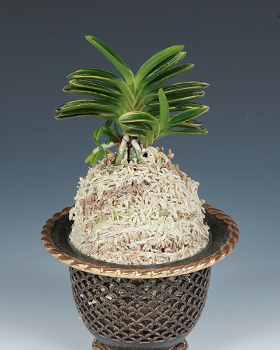'옥금강'의 '부용(芙蓉)'과 '풍명전(豊明殿)'의 실생에서 변이된 두엽의 '풍명 예' 백호반(白虎斑) 품종이다. 천엽은 감모자(紺帽子)를 깊이 쓴 새하얀(雪白) 중반의 감복륜(紺覆輪), 자라면서 성반(星斑)을 동반한 설백호반으로, 매우 서서히 어두워지는 후암성(後暗性)의 '豊明 芸'로 완성된 백호반 품종이다. 뿌리도 총루비근으로 예쁘다. '백천보(白天寶)' 등과 비슷한 품종도 있으나, 본종은 더욱 소형으로 예가 독특한 남다른 구석이 많아, 존재감이 확실한 개성적이다. 특히 '부용'의 피가 흘러 붉은 꽃이 기대된다. 잎 짜임새가 좋은 소형의 두엽으로, 짙은 감과 새하얀 무늬의 대조가 돋보이는 어여쁜(아름답고 사랑스러운) 난이다. 니축에 붙음매는 파형이다.