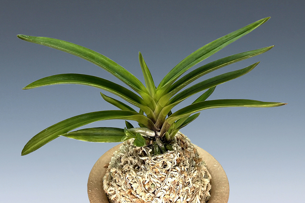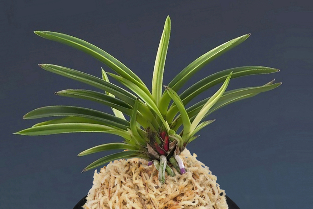 한국에서 작출 된 아마미계 실생으로, 반호계(斑縞系)의 산반호(散斑縞) 품종이다. 무명(無銘)으로 일본에 건너가 "아풍(雅風)"이라는 이름이 붙어졌지만, 같은 동료로서 한국에서는 다른 이름으로 애배(愛培)되고 있을지도 모른다. 천엽은 서(曙)의 「모단 예(牡丹 芸)」로 올라, 섬세한 산반호를 흘리는 미려한 품종이다. 특히 두꺼운 잎에 감(紺)이 짙은 바탕과 줄무늬와의 대비가 좋고, 붉은빛의 홍축(紅軸)이 눈길을 끄는 아름다운 품종이다. 특별히 주목되는 점은, 가장자리를 따라 좁게 두른 무늬는 앞으로 복륜으로 전개될 가능성을 기대하게 하는 장래가 밝은 품종이다. 잎은 두꺼운 입엽성 희엽으로 노수엽도 섞이는, 비교적 중형에 속하는 아담한 모습이다. 니축에 니근으로, 붙음매는 월형이다.
